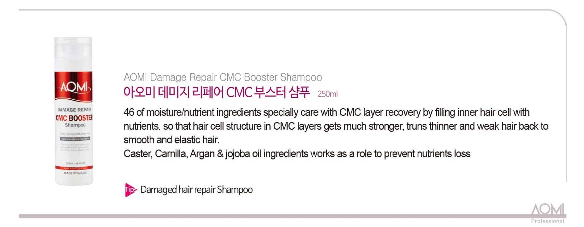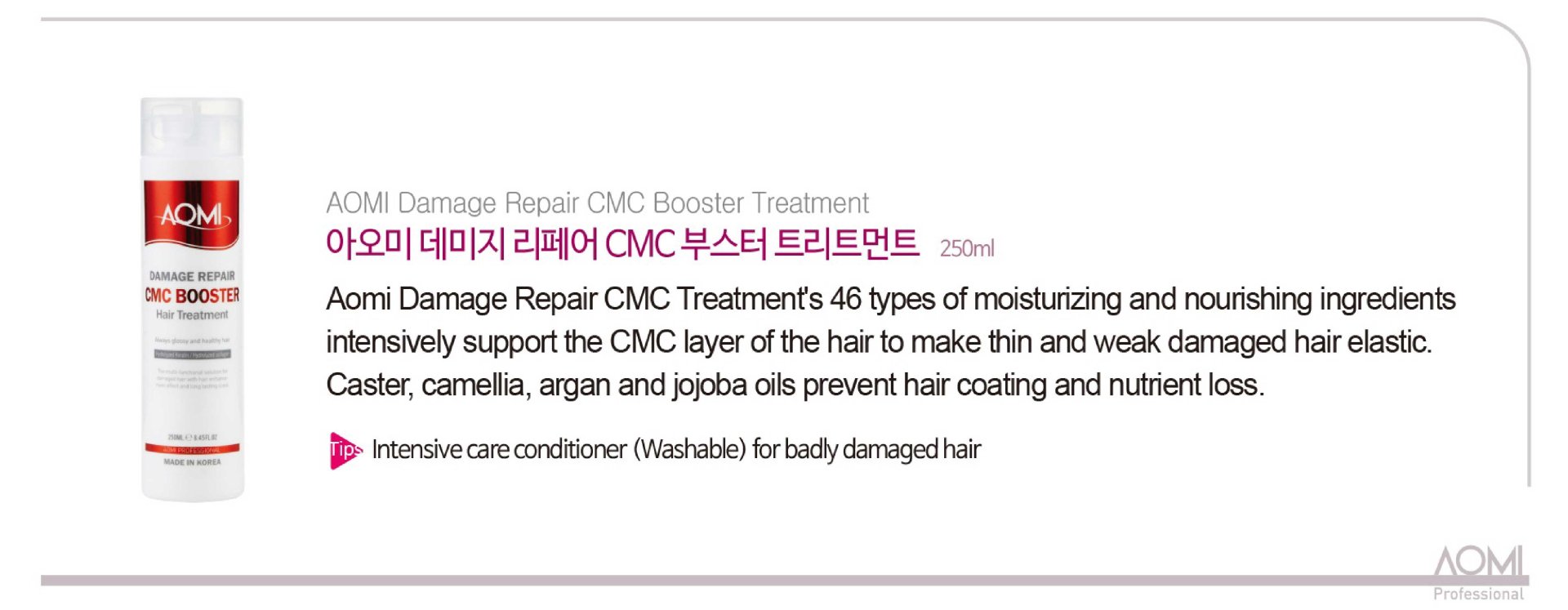 Damage Repair CMC Booster Hair Shampoo, Hair Treatment ,Essence และ Balancing Scalp Tonicออกแบบมาเพื่อดูแลเส้นผมอย่างล้ำลึก สำหรับผมที่ผ่านการทำสี ผ่านสารเคมี และผ่านความร้อน ซึ่งอุดมไปด้วยสารสกัดจากธรรมชาติที่เสริมสร้างและบำรุงเส้นผมให้แข็งแรง อีกทั้งยังฟื้นฟูโครงสร้างเส้นผมให้กลับมายืดหยุ่น นุ่มลื่น แลดูสุขภาพดีอีกครั้ง