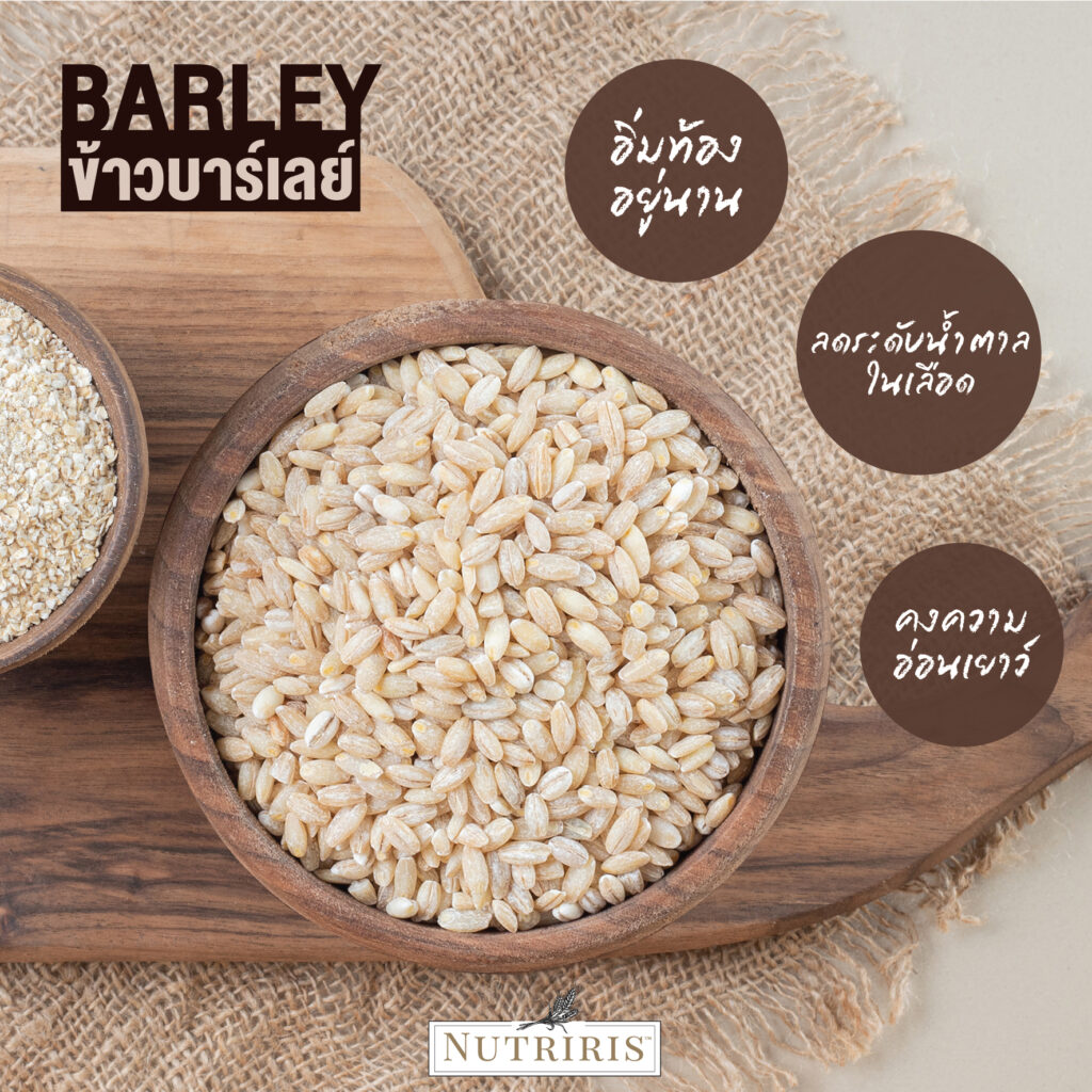 เมล็ดคล้ายลูกเดือย แต่ลักษณะเมล็ดมีความเล็กและเรียวกว่า ประกอบไปด้วยคุณค่าทางสารอาหารที่เด่น ๆ ได้แก่ ไฟเบอร์สูง โปรตีนสูง สารต้านอนุมูลอิสระและมีแคลอรีต่ำ ข้าวบาร์เลย์จึงเป็นธัญพืชที่คนรักสุขภาพนิยมทาน มีประโยชน์ เหมาะกับการรับประทานอย่างเป็นประจำ