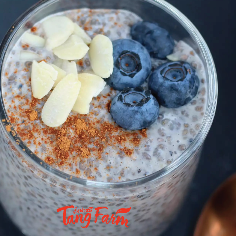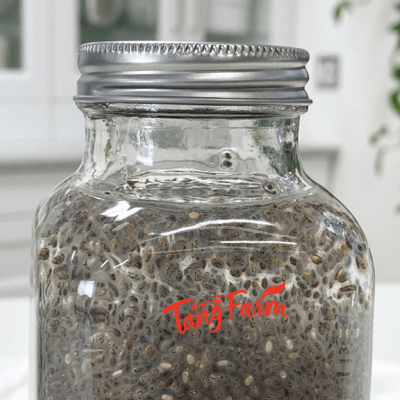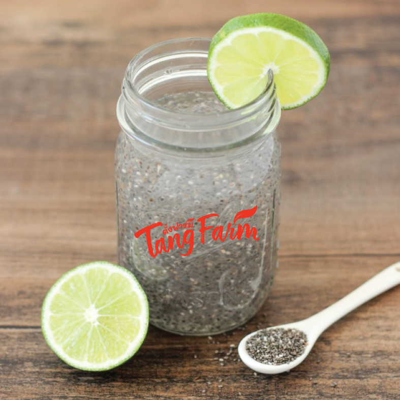 ใส่เมล็ดเชีย 1 ช้อนโต๊ะ : น้ำเปล่า 1 แก้ว