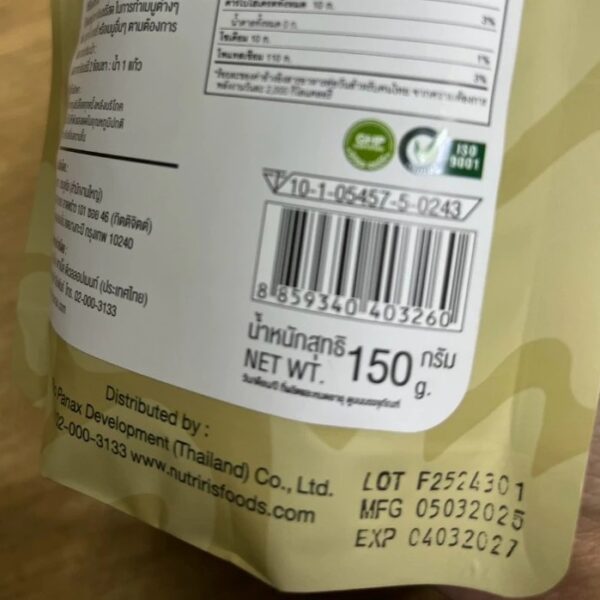 วิธีเก็บรักษา : ปิดปากถุงทุกครั้งหลังบริโภค ควรเก็บให้พ้นแสงแดด