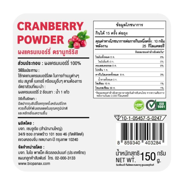 ส่วนประกอบ : ผงแครนเบอร์รี่ 100%