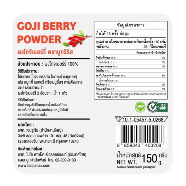 ส่วนประกอบ : ผงโกจิเบอร์รี่ 100%
