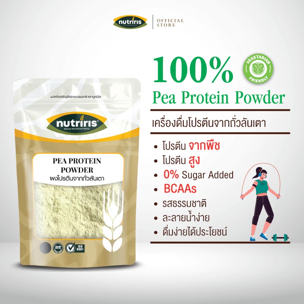 ส่วนประกอบ : ผงโปรตีนจากถั่วลันเตา 100%