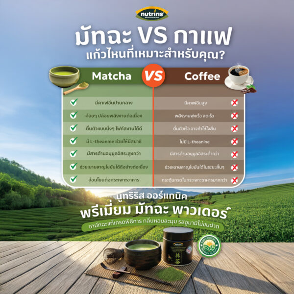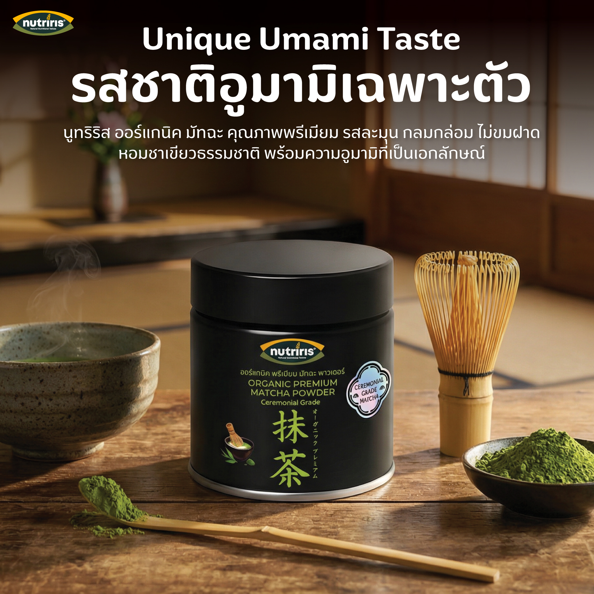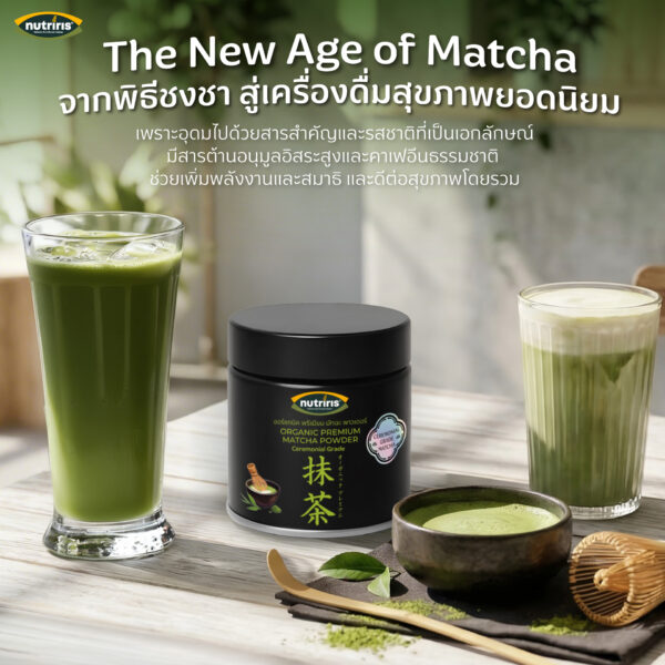 ส่วนประกอบ : ผงมัทฉะ ออร์แกนิค 100%