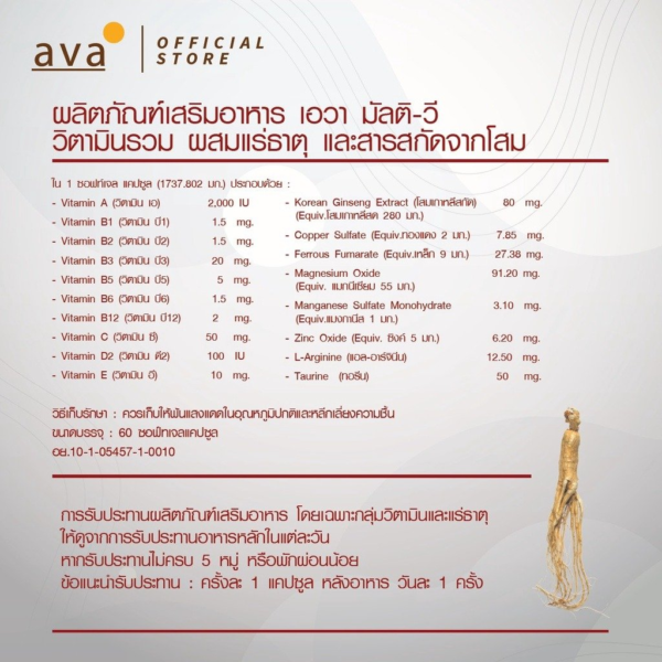 มัลติ – วี วิตามินรวม ผสมแร่ธาตุ สารสกัดจากโสม