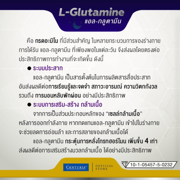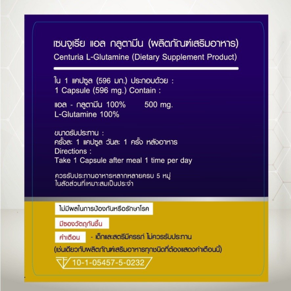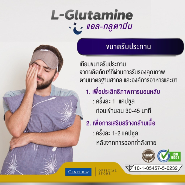 ผลิตภัณฑ์เสริมอาหาร เซนจูเรีย แอล-กลูตามีน 500 มก.