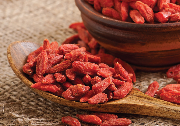 โกจิเบอร์รี่ เป็นพืชในตระกูลเบอร์รี่ ที่มีค่าการต้านอนุมูลอิสระสูง มีเบต้าแคโรทีน,